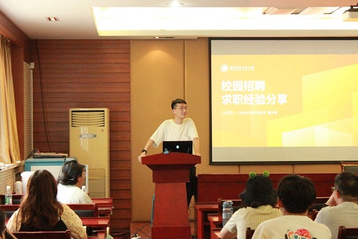 入职北京小米移动软件有限公司南京分公司2018级通信2班王汪洋学长给大家分享了他的求职过程,激励同学们充分准备努力找到心仪工作。同时,他还介绍了如何提升技能的方法,给大家推荐了许多实用的学习网站。在场学生也针对就业与学长学姐们进行交流。