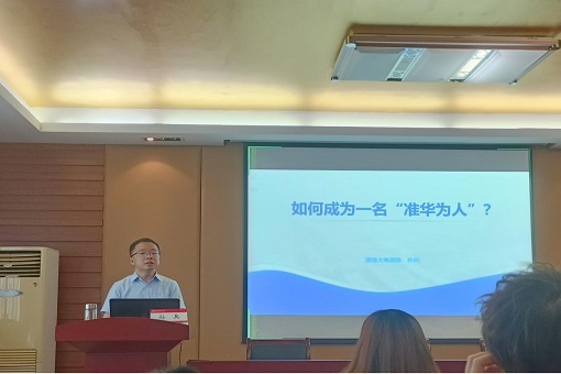 会议伊始,孙兵老师从四个部分向同学们讲述如何成一名“准华为人”。第一部分介绍华为企业文化。孙老师向同学们介绍,华为的成功离不开华为自身的文化导向,一个优秀的公司最不缺的就是优秀的文化素养。第二部分讲解华为员工的能力模型和招聘应用。孙老师让同学们了解了华为员工基本的素质要求和面试技巧。想要进入这样的“大厂”,必须对自己严格要求,掌握起码的技能技术。第三部分是华为能带给我们什么?孙兵老师结合自身经历向同学们分享了在职场的一些经历和收获,不管做什么,都要有自己的愿景来驱使自己付诸行动。最后,孙老师向同学们推荐了《高效能人士的七个习惯》这本书,并指出这七个习惯(积极主动、以始为终、要事为一、双赢思维、知彼解己、统合综效、不断更新)会让人受益终身。