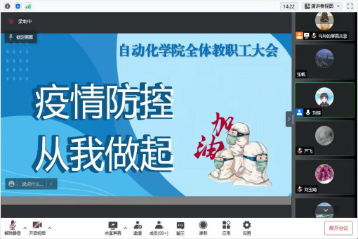 为深入贯彻落实疫情防控工作要求,筑牢疫情防控的安全屏障,切实保障师生安全和身体健康,4月10日晚上,自动化学院组织召开了全院教职工大会,部署学院疫情防控工作安排。全院教职工参加会议,会议由党委书记刘佳主持。会议采用腾讯会议线上方式进行。