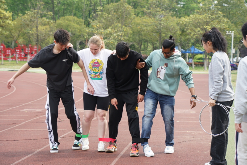本次活动吸引了来自俄罗斯、巴基斯坦、泰国等国十余名留学生,与雷丁学院的同学组成8支4人小组,合力完成滚铁环、四人五足、旋风跑等挑战,根据每项比赛积分决出最后小组排名。比赛项目考验中外学生的默契配合程度和团队协作能力,来自不同国家的学生在一次次的合作中更好地沟通交流,在竞争中升华跨国友谊。