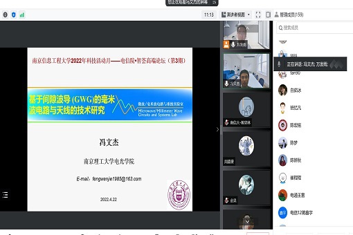 为迎接南京信息工程大学2022年科技活动月,4月22-23日,电信院通过线上形式连续开展第二期至第四期“智荟高端论坛”学术分享活动,电信院众多研究团队及学生参与。