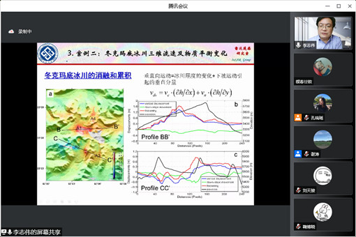 李志伟主要介绍InSAR监测山地冰川及参数反演工作,包括冰川地形提取、冰川厚度变化及物质平衡变化估计、冰川二维/三维形变估计、冰川跃动机制分析及相关案例如:冬克玛底冰川三维流速及物质平衡变化。InSAR技术不受云雾影响,可实现大范围同步和连续的观测,且在三维立体观测和冰面地形获取方面有明显优势。