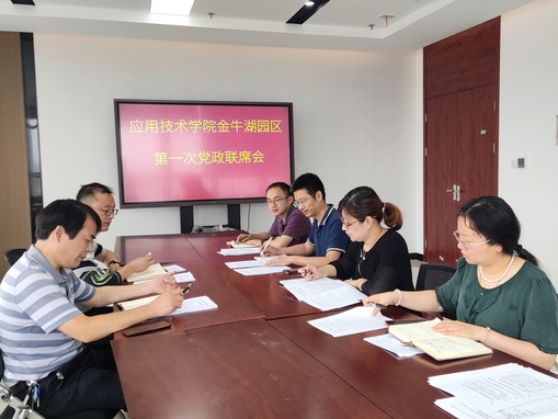 学院党政联席会议从当前学校战略部署和学院发展的角度出发,强调了入驻金牛湖产教融合园区对应用技术学院事业发展的重大意义。会议指出了学院搬迁至金牛湖产教融合园区所面临的困难和新的机遇,强调领导班子应该快速适应新环境,克服困难,为教职工做好积极示范作用,确保两地办学顺利运行。会议要求结合金牛湖园区的实际情况,着力强化与企事业单位的合作,继续拓展办学资源,创新合作办学模式,不断提升办学效益,以进一步提升人才培养质量。会议同时讨论了教师在金牛湖园区的授课培训、本部学生与园区学生的日常管理、教务运行的人员协同机制等相关议题。