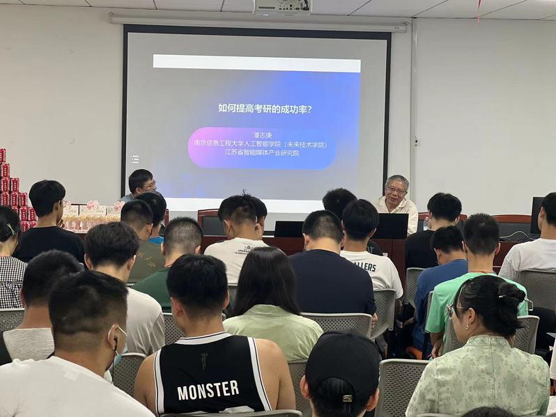 徐军介绍了人工智能学院(未来技术学院)研究生招生情况、导师团队情况等,鼓励同学们积极报考南京信息工程大学人工智能学院(未来技术学院)。