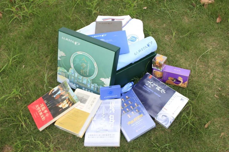 领导们还为新生送上入学礼,满满的仪式感让新生倍感幸福。沉甸甸的入学礼包括五本书:《习近平与大学生朋友们》《丝路风云》《终生成长》《未来科学家》《大气科学》,还有定制的精美卡套、专属T恤和笔记本等。除此之外,学院今年专门为新生定制了大学“生涯地图”,引导新生们主动思考和规划自己的大学生涯。沉甸甸的入学礼不仅是惊喜,更是领导和老师们对新生的殷切期待。