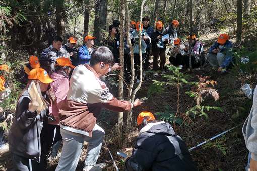 10月12日,师生怀揣满腔热情和探索欲从尚贤楼集合出发,开始了求索真知的旅程。实习过程中,指导团队的老师们实地教学,通过声情并茂的讲解、耐心细致的引导,将课堂理论与野外实践充分结合:庐山脚下,分析红壤形成过程及土壤剖面发生分类知识;大月山上,教授植物分类的技能,讲解大月山的地质地貌及形成;植物园里,分析茶树生长,体悟生态功能……所到之处,老师们因地制宜,挖掘庐山生物、地形所蕴含的学科知识,在需要强大体力支撑的爬山过程中,认真讲解,以身作则,帮学生及时总结实习内容,安排衣食住行,保障实习的顺利进行。在老师们的指导下,同学们成功完成了土壤质地定性鉴定等项目,观测高大乔木年龄,展开数据采集、生物多样性的调查等实践。此外,师生还共同参观了庐山会议旧址,在学习专业知识之余,接受革命传统教育,坚定爱国信念。