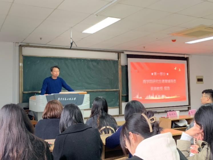 为落实学校研究生德育辅导员工作制度,加强研究生思想政治教育,商学院于2022年11月18日在揽江楼S305召开了“奋进新时代,青春勇担当”2022级研究生德育辅导员主题报告会。商学院研究生德育辅导员吴崇教授、研究生助理德育辅导员张明杨副教授出席报告会,2022级全体在校研究生参会,会议由研究生辅导员蔡梦琦主持。