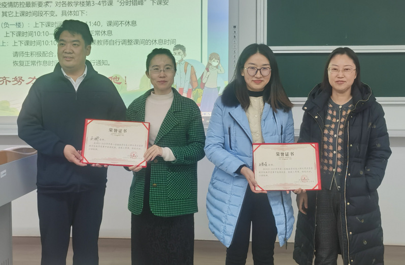 参赛教师精心备课,在15分钟的现场教学展示过程中精神饱满、仪态端庄、教学内容娴熟、声情并茂、条理清晰、重难点突出,运用板书与多媒体教学等综合手段,在教学内容中积极融入课程思政元素,用创新的教学方式启发学生,充分展示了各位老师的教学风采。经过激烈角逐,杨春玉老师荣获一等奖,周文东老师和王金虎老师荣获二等奖,王雪娟老师和王娜老师荣获三等奖。