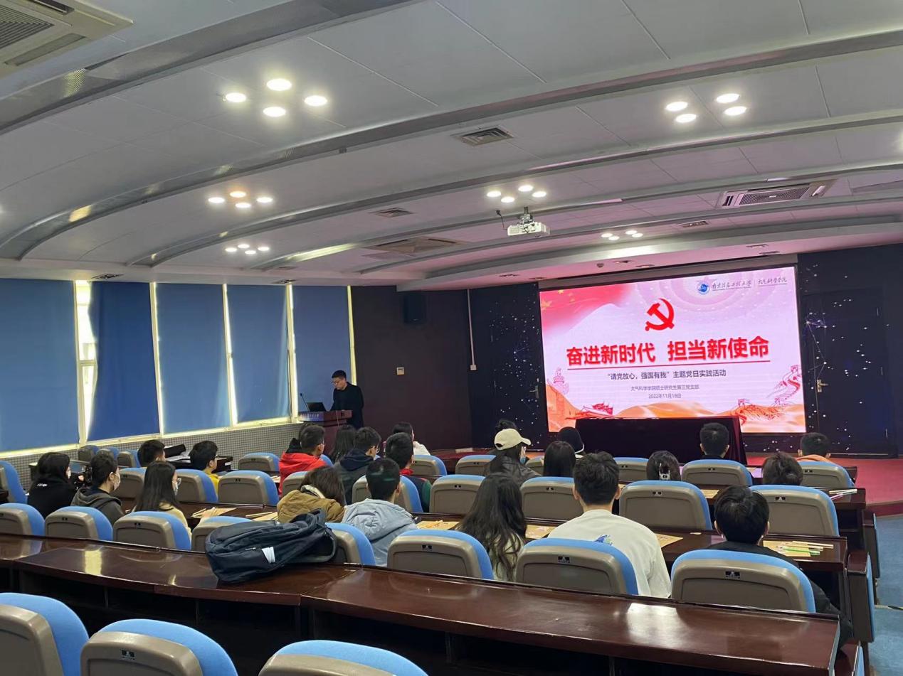 为深入学习贯彻党的二十大精神,激发研究生党员的爱国情感与使命担当,激励青年学子更加坚定自觉地为党的事业贡献青春智慧和时代力量,近日,大气科学学院硕士研究生第三党支部开展“请党放心,强国有我”主题实践活动,支部全体党员和入党积极分子参加活动。