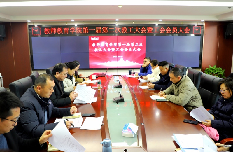 1月7日下午,教师教育学院于揽江楼s601召开第一届第二次教工大会暨工会会员大会。会议由院党总支副书记、副院长王平主持。