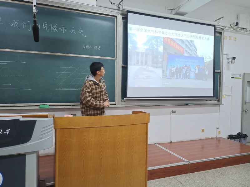 讲解部分结束后,学长还设置了提问环节。问题由浅入深,起先脱口而出的回答到后来便要略微思索,再后来同学们更是思忖良久方才得出答案。教室内,思维不断碰撞,无论是不是气象相关专业的同学,都在思考中提升了对气象知识的认识与理解。