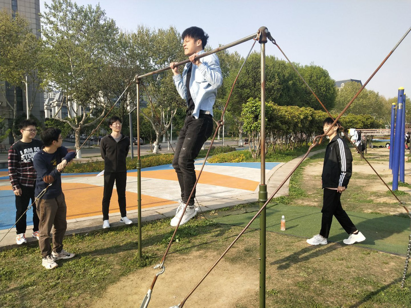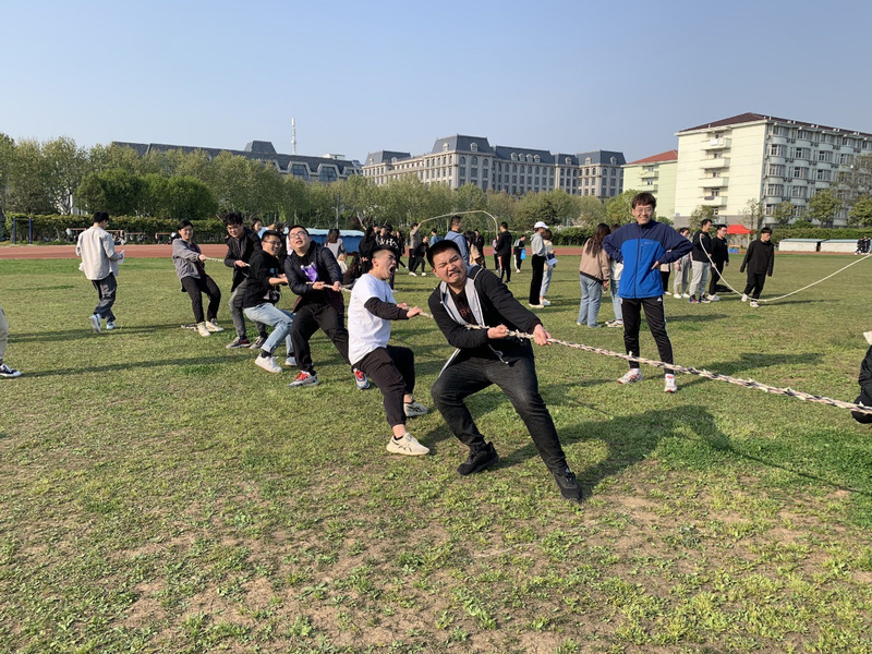本次运动会共包括拔河,跳大绳,50m抱球蛇形接力跑和力者荣耀四项游戏。拔河比赛采取三局两胜制,赢者积2分,其他三项比赛按照名次最高积6分,最少积1分,最终按所有比赛中的积分总和排名。最先开始的项目是拔河。哨声一响,气氛立时热烈起来,观战者齐声为自己的班级加油。参赛者脚蹬地面,身体后倾,那神情必是连牙齿都在用尽力气,全身紧绷如拉满的弓,紧握的长绳就是弓上的箭,虎视眈眈指向对方。其中一队力拔山兮气盖世,直拖得对方队伍不断踉跄,不过坚持几瞬就败下阵来。另有一组势均力敌僵持不下,引得四周加油声高涨,直到一方后继乏力才定了胜负。胜利方欢呼喝彩,失利方沮丧之余相互鼓励,投入到下一场比赛中。而相较于拔河力量的碰撞,跳大绳和接力跑同样精彩。身高腿长的同学轻松绕过障碍,将球交至下一位接力者手中;轻盈敏捷的同学翩跹如蝶,跃过长绳在空中画出一道弧线。力者荣耀则分为男生的引体向上和女生的仰卧起坐,按成绩的总和算排名。仰卧起坐的一分钟看似短暂,却是对耐力的考验,尤其是最后的几秒,同学们即便已经筋疲力尽,仍要挣扎着坐起来,为团队的总数多贡献一分。引体向上亦是气势磅礴,有一位同学将器材拉出了一阵阵碰撞声,激起一片惊叹。比赛的最终结果是20级的1队和2队分别斩获前两名,19级海技队荣获第3名。