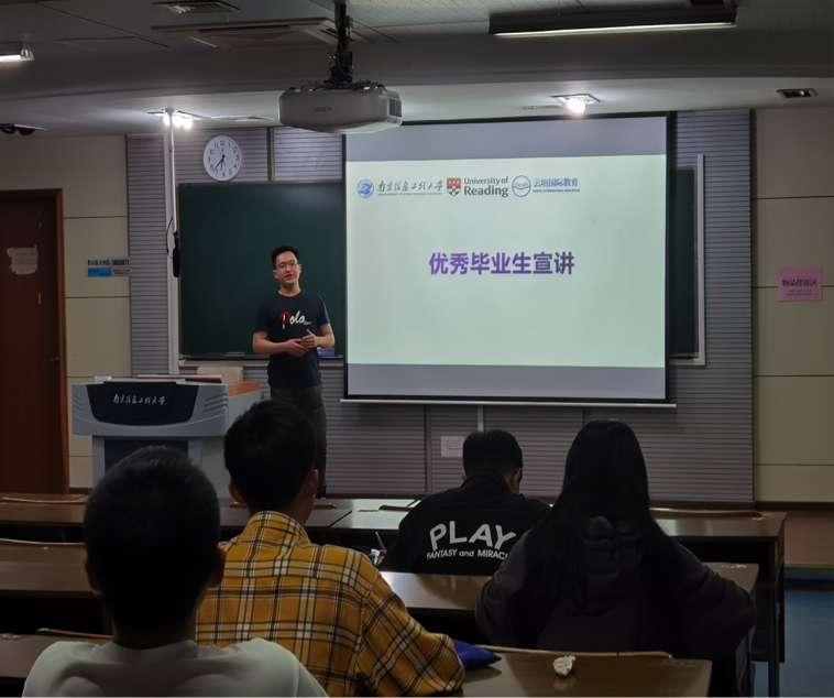 讲座围绕旅英留学中的生活、学习、创业等方面展开,主讲人对同学们可能遇到的疑问困惑一一解答。讲座伊始,硕士毕业于英国帝国理工大学的柳皓学长大致介绍了英国雷丁大学的本科课程设置,同时分享了雷丁大学优良的学习氛围,将国内考研与国外申研进行比较,帮助同学们做出最合适的选择。接着,硕士毕业于英国杜伦大学的张乐渊学姐为同学们介绍了雷丁大学的校园生活概况,用一张雷丁大学Hall map,帮助同学了解校园,并提供宿舍选择指南。最后,硕士毕业于英国谢菲尔德大学的蔡俊浩学长以自身经历,讲述在英国勤工俭学、创业的生活经历。他鼓励同学们勇于尝试新鲜事物,不囿于现状,追求问题最优解。