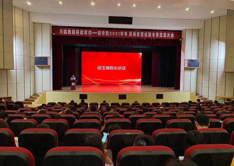 6月3日晚,商学院在大学生活动中心二楼剧场举行商学院2022届学生高质量就业推进大会暨2021届考研表彰大会,以表彰先进、树立典型和分享复习备考经验,动员和部署2021届考研工作,力争2021届的考研工作取得佳绩。