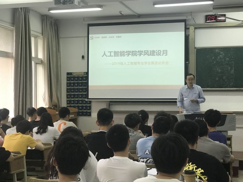 为进一步做好立德树人工作,营造积极向上的学习氛围,培养同学们良好的学习习惯,不断提升学院人才培养质量,6月3日人工智能学院开展“学风建设月”推进会。院党委书记倪东鸿、学办副主任曹芸、2019级人工智能专业全体学生参加会议。