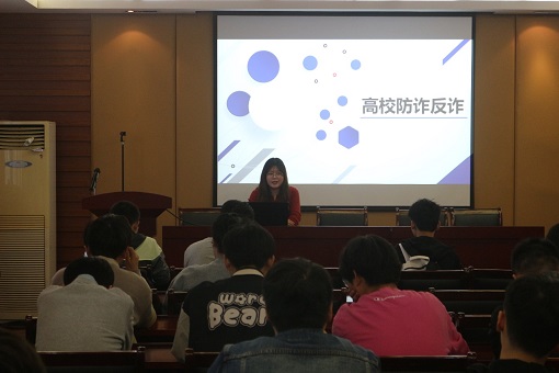 首先,左香草老师从一些诈骗案例着手,以案释法,向大家剖析了网络诈骗团伙进行诱骗的常用手段及渠道,强调了大学生提高防诈骗意识的重要性;接着,她列出七类高发生率的网络诈骗案件类型,提醒学生一方面要保护好自己的隐私,不随意点击网站链接、轻信陌生人的说辞,另一方面要洁身自好,抵制网络诱惑,不做违法之事。最后,左香草老师号召各班班长及安全员灵活运用各种方法,向学生宣传防范网络诈骗的相关安全知识,筑起安全围墙。