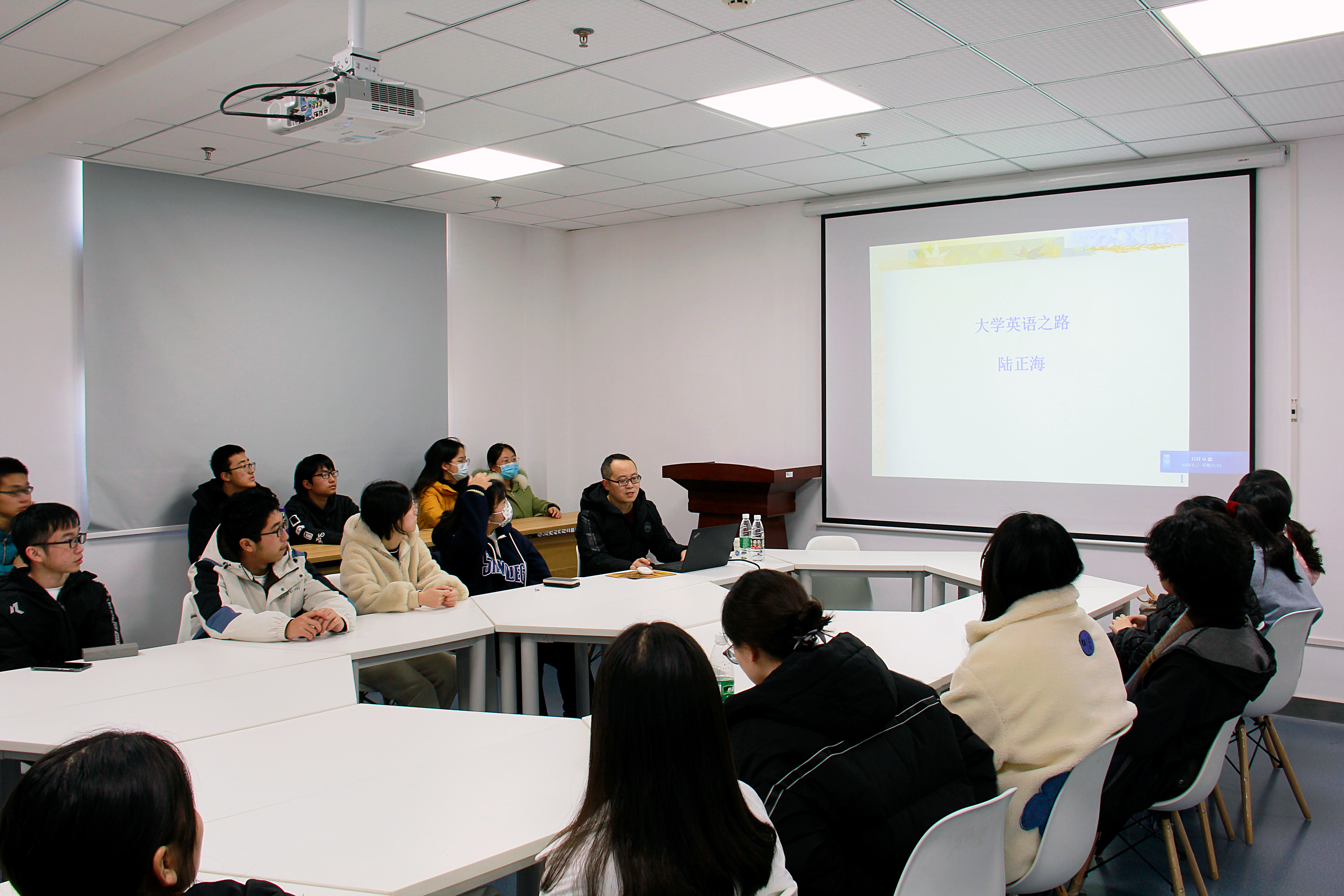 为培养厚基础、宽视野、强能力、高素质的新时代大学生,加强师生之间的交流,探索师生关系的新路径,龙山书院于12月2日下午在尚贤楼302举行了第三十一期“龙山师说”——大学英语之路,从四级到考研。本次活动由文学院陆正海老师主讲,龙山书院辅导员刘金星老师主持。