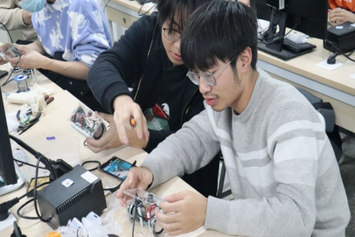 在攻克焊接这一难关后,下一步便是电路电源配置及形体组装,尽管这个环节相对简单,但同学们仍以最严谨的态度来对待。他们明白,制作过程中每一步都不能出错,在测试完之前不得有一点松懈。