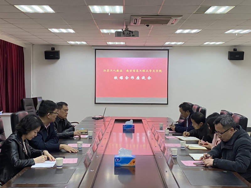 赵霞对戴社长一行表示欢迎,并简要介绍了文学院的历史沿革和发展现状。她希望充分发挥双方优势在学生实习实践、社会调查研究、服务地方等方面广泛深入开展合作,通过深化合作获得共赢。《江苏工人报》社社长戴路介绍了《江苏工人报》诞生和发展历程。他说,在报媒一体化背景下,《江苏工人报》期待与文学院深化合作、借力发力,在党建、人才培养、人才共享和服务社会等方面开展更多合作,《江苏工人报》积极支持南信大文学院提升影响力。范勇对戴路社长一行关心支持学院发展并来校洽谈合作表示感谢,希望双方在研究生联合培养方面开展积极合作。