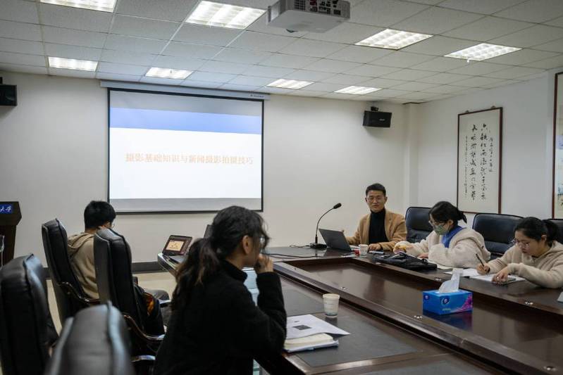 首先,张峰老师分别从“如何进行新闻写作”“摄影的基础知识及拍摄技巧”两方面开展讲座。新闻写作方面,他结合我校天际新闻网实例,重点讲解了新闻采写的要点与注意事项等。张老师着重强调闻工作者要注重基本素养,例如:提前安排采访流程;善于与人交流,使受访者感到亲切自然;合理使用录音设备等。摄影方面,他以丰富的知识底蕴和实践经验系统地讲述了设备使用,拍摄技巧等基础知识,并且介绍了各种场景的拍摄方法。最后,张老师还特别强调了实战的重要性。他告诉同学们摄影不难,熟能生巧,只要多多尝试,技能就会得到提升。