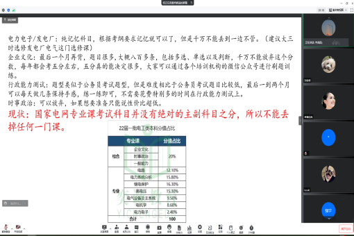 会议伊始,刘悦老师简单介绍了举办此次线上分享会的目的,指出随着国家电网的考试热度越来高,难度也会越来越大,希望广大有志向报考国家电网的同学尽早开始准备。