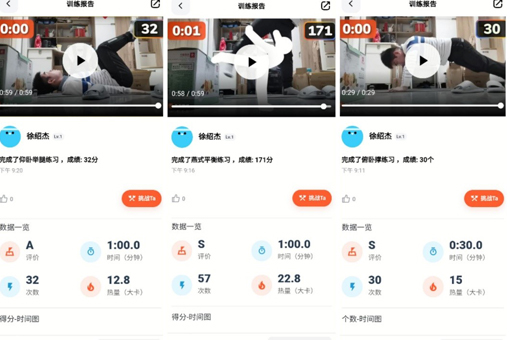 本次活动利用“天天跳绳”APP平台,参与者根据自己的兴趣爱好选择开合跳、跳绳、仰卧起坐、俯卧撑、原地跳箱、深蹲、侧滑摸桩等项目进行每日运动打卡。活动启动后,学院研究生积极参与,连续10天完成运动打卡任务。经过平台计分,最终计分位列前三的王书晴、徐绍杰、何艺璇同学荣获一等奖,活动另评出二等奖5名,三等奖10名。