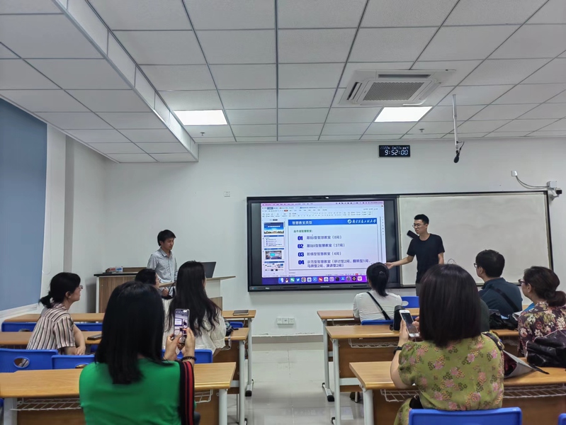 本次培训会特邀南京信息工程大学现代教育技术中心李亚坤等三位老师为教师们实地讲解园区的教学设备、操作示范及基础答疑。培训会上,教师们深入了解了基础Ⅰ型小教室、基础Ⅱ型中教室、阶梯大教室和示范型教室等智慧教室的设备使用情况,明晰了金牛湖园区教学设备与校本部现有的教学设备在使用差异,熟悉了设备的使用方法和注意事项。在讲解与操作演练过程中,大家认真听讲,踊跃提问,积极开展讨论交流。培训会紧凑高效,现场气氛活跃,取得了良好效果。