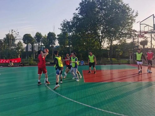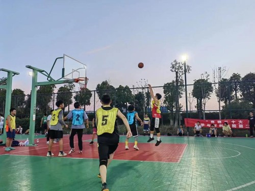 正值盛夏,阳光与运动员们的奋斗汗水一同挥洒在篮球场上。队员们熟练的运球、传球、投篮,举手投足间处处彰显着团结协作的力量。比赛场外,加油呐喊的声音此起彼伏,默契的传球、精准的投篮、利落的进球,留下了许多精彩的瞬间,一次次将气氛推向高潮。每场比赛都畅汗淋漓、精彩纷呈,虽然充斥着紧张的竞争氛围,但也时刻体现着友谊第一、比赛第二的体育精神。