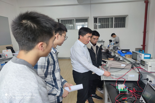 第二天上午,在经历了一晚上的知识沉淀后,学生们都已经跃跃欲试。出于人身和设备安全考虑,杨学长首先进行了变换器的加电实验演示,对接线和加电顺序进行了详细叮嘱,指出了各种操作不当会导致的后果,让小组成员充分认识到了电路操作严谨性的重要意义。然后,小组成员分别亲自进行了加电实验,测量到了详细的实验波形。实验的最后,毛老师对本次实验进行了总结,指出了该实验电路还存在的诸多问题,以及下一步改进思路。