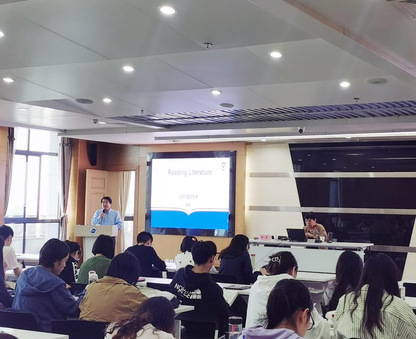 随后,金教授带领同学们一起阅读了英国女作家曼斯菲尔德的短篇故事,指导同学通过文学文本的阅读,领略文学作品的内涵及审美价值。讲座结束后,金教授还与现场的各位学生进行了热烈的互动。大家接二连三地向金教授提出了一些针对文学阅读的问题,金教授均耐心作出了解答,现场气氛达到了高潮。