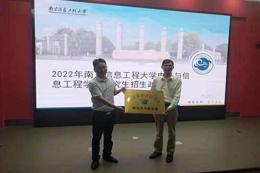 最后,万发雨代表学校给安徽工程大学电气工程学院授牌“南京信息工程大学研究生生源基地”,对安徽工程大学电气工程学院源源不断为我校输送优质生源作出肯定,并给今年安徽工程大学电气工程学院成功考取我校研究生的学生代表颁发了喜报,祝贺他们的同时,也期待他们加入我校研究生队伍后为建设我国的通信事业而共同努力奋斗!