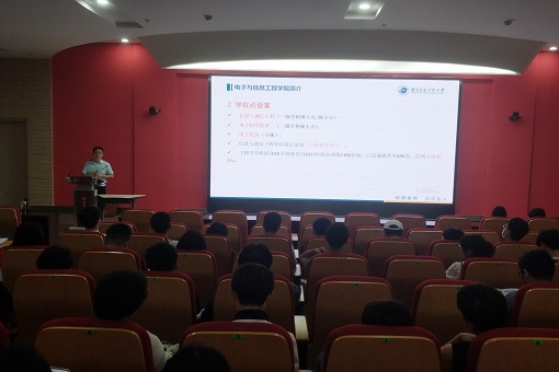 活动伊始,我校电信院万发雨教授为安徽工程大学电气工程学院2018级全体本科生进行研究生招生政策宣讲,万教授从学校发展、学院特色、专业设置、人才培养、导师团队等方面详细作了介绍,并鼓励18级本科生们认真复习备考,积极报考我校研究生。
