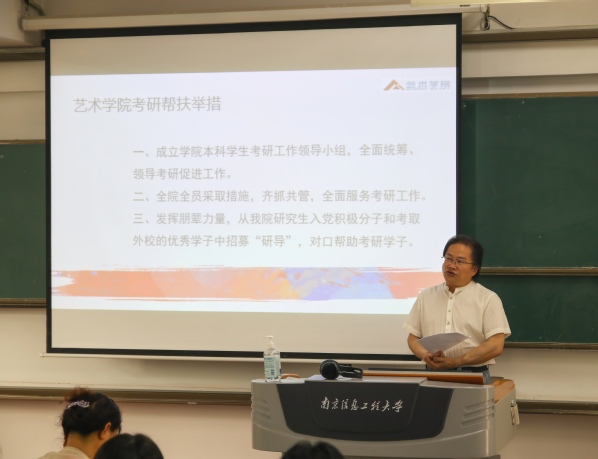 会议初始,梁家年院长发表讲话,他向同学们讲述了历年来我校考研出国升学人数,学院考研学子的佳绩,并对标南京其它高校考研升学成绩,鼓励学生明确考试学校,发挥自身优势,明确自身道路。