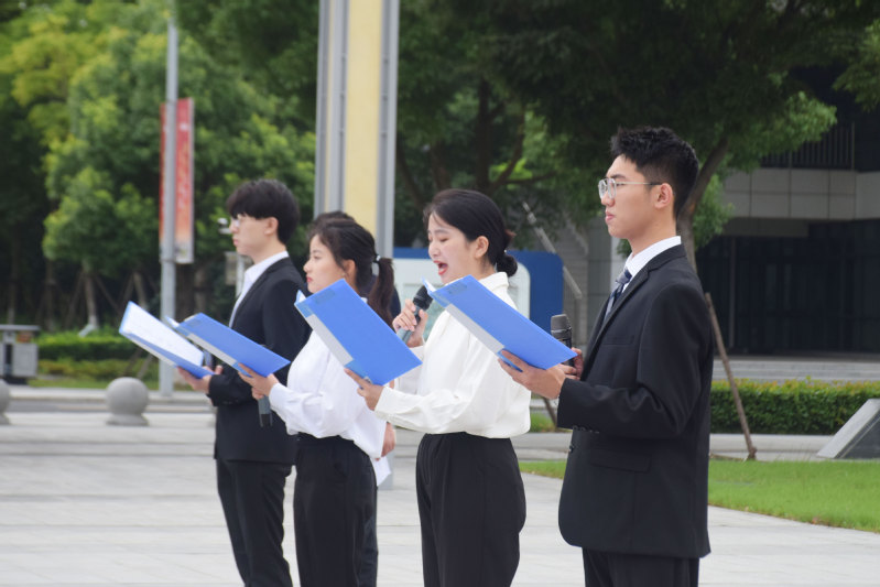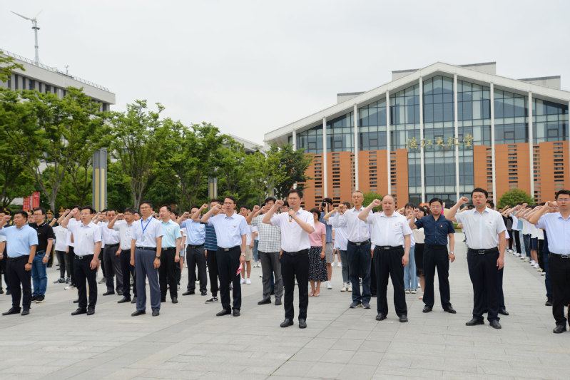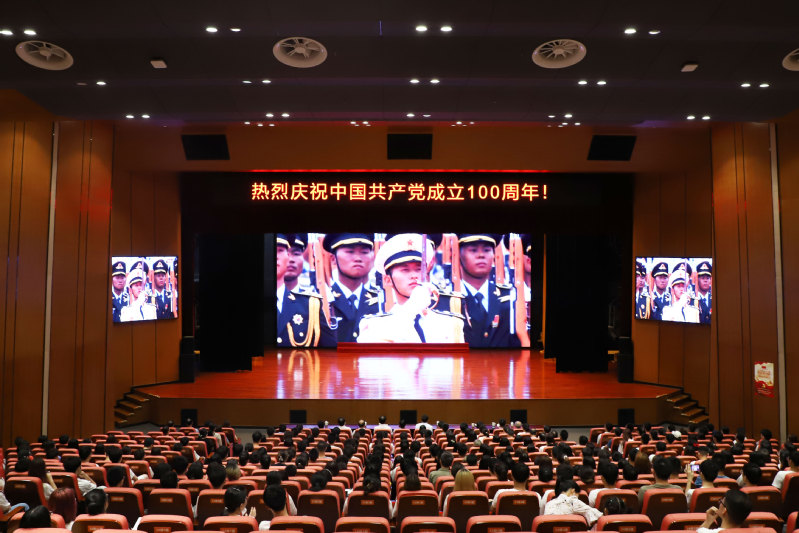 7月1日上午,滨江学院师生齐聚大礼堂南广场,升国旗、唱国歌,并在大礼堂集中收看庆祝中国共产党成立100周年大会直播。