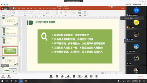 论坛期间,甄钟秀同学就文献查找、文献阅读、论文写作、论文投稿四个方面分享了自己的宝贵经验,手把手教大家如何在不同的平台上下载文献,已经下载好的文献用哪些管理软件进行分类管理,以及怎么阅读一篇文献,怎么写好一篇论文,最后又介绍了论文发表的相关流程。大家听的非常认真专注,好多同学边听边录屏,且无一人中途退出。
