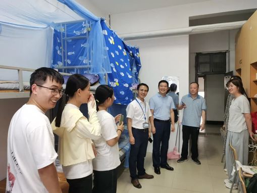 10月5日下午,大物院党委书记朱伟军、主持工作副院长夏海云、院党委副书记兼副院长陈建坤走访研究生及本科生宿舍,为萌新们送上慰问和祝福。“你来自哪里”“对这里还适应吗”“对自己本学期的学习生活有什么规划”,每到一处,领导都会亲切地询问,充分了解同学们对学校的印象和到校后的适应情况。