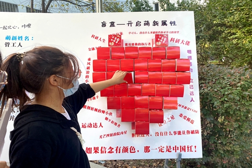 “我是科创之星,你呢”“哈哈,我是金融大鳄哦”,10月5日上午,文园6栋宿舍楼下的红色展板前热闹非凡,来自全国各地的小萌新们正在“盲盒”专区驻足拍照,分享着属于自己的萌新属性。“比心、挑选、开启,就可轻松获得自己的萌新属性,让生涯规划不再迷‘盲’”,管理工程学院迎新现场的工作人员介绍到。据了解,管理工程学院寓教于乐,科学定制381种生涯属性,将时尚性和趣味性融入到迎新活动中,让新生在拆盲盒中预见最美丽的自己,受到了2021级新生的频频点赞,“满满的仪式感,很开心、很感动、很温馨”,来自经济统计学专业的小李同学说道。“盲盒”专区前也吸引了不少老生前来体验,“非常有趣,还分男女款,不禁让我们想起了去年的迎新时光”,正在迎新现场参加志愿服务的小宋感叹道。