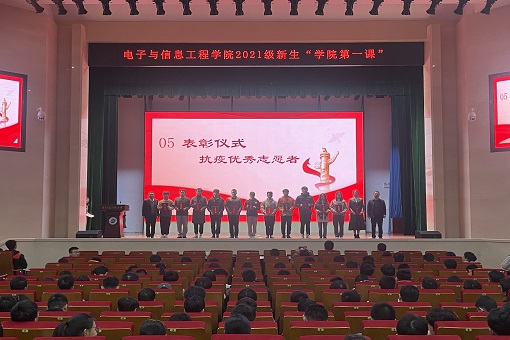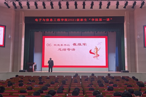 11月11日晚,电子与信息工程学院2021级新生“学院第一课”暨优秀志愿者表彰仪式在风云剧场举行。电信院院长张治中,院党委书记崔维军,副院长万发雨,长望学院副院长、电子信息工程系主任张秀再,全体辅导员,新生班主任、班导及2021级全体新生参会。大会由电信院党委副书记、副院长叶玉娣主持。