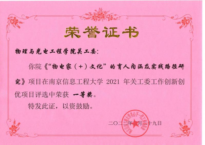 近日,校关心下一代工作委员会公布2021年关工委工作创新创优项目评选结果,物电院关工委申报的《“物电家(+)文化”的育人内涵及实践路径研究》项目获评一等奖。