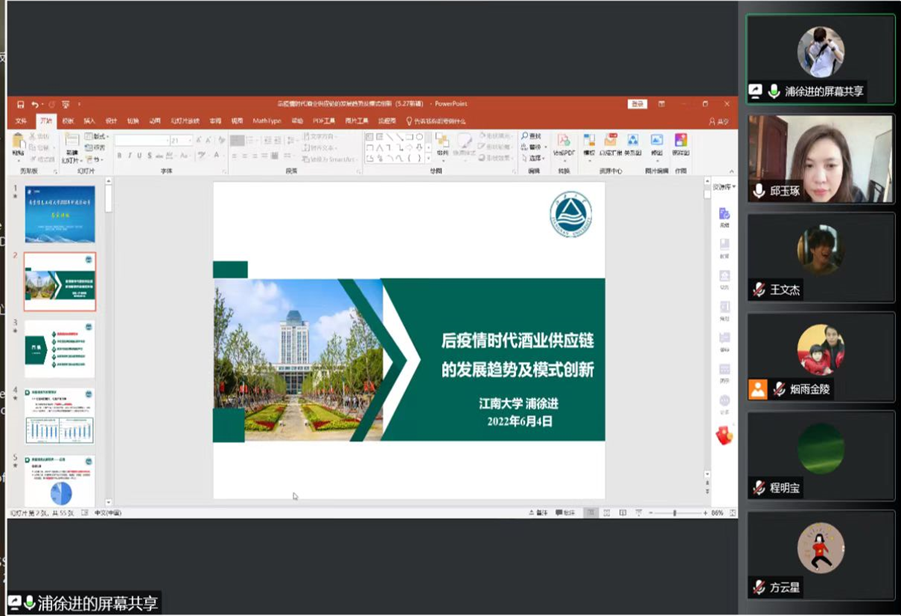 6月4日上午,教育部“新世纪优秀人才计划”与江苏省“333”高层次人才计划入选专家,江南大学商学院院长浦徐进教授应邀为我校2022年科技月活动名家讲坛作学术报告。报告主题为“后疫情时代酒业供应链的发展趋势及模式创新”,讲座由商学院院长邱玉琢教授主持,院外师生,本院教师及研究生100多人在线参加了讲座。