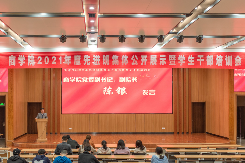 为进一步提高我院学生干部的综合素质,增强自我教育、自我管理、自我服务的意识,切实提高学生干部的工作能力和工作效率,同时展示我院优秀班集体的风采,2021年3月29日,商学院在滨江报告厅举办2021年度先进班集体公开展示暨学生干部培训会。商学院党委副书记、副院长陈银、学办副主任王芳、团委书记史恒,全体辅导员老师以及商学院主要学生干部参加了本次会议。