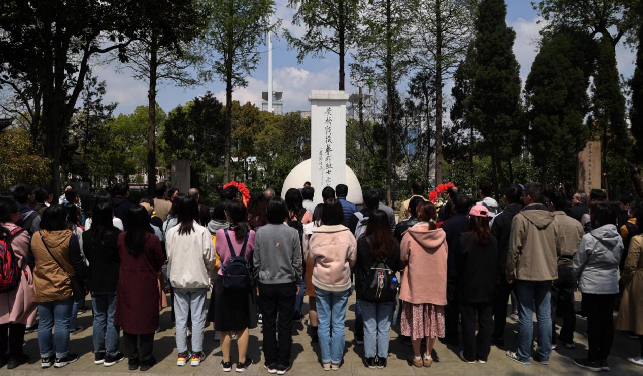 松柏郁郁埋忠魂,春风穆穆祭英烈。在黄桥公园粟裕将军骨灰安放处,江苏经济报社党支部书记、社长颜杨林和南京信息工程大学文学院领导共同为英烈敬献花圈,随后全体人员绕墓一圈,向先烈致敬。