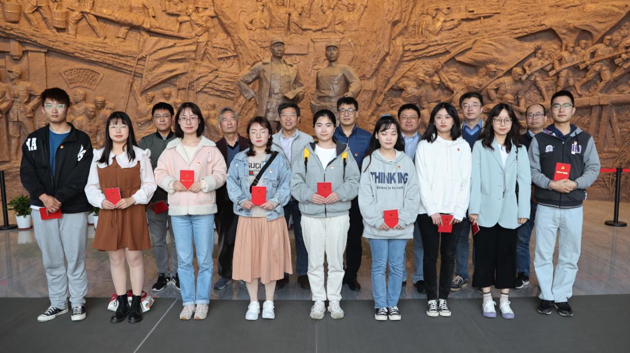 新四军黄桥战役纪念馆,是为了纪念由陈毅、粟裕等新四军领导人在这里指挥的著名的黄桥战役并成立江苏省第一个抗日民主政府而建造的。在纪念馆大厅革命烈士雕塑前,江苏经济报社和南信大文学院相关领导为新发展学生党员佩戴党员徽章并赠送党章。南信大文学院原党委书记、党建组织员陈学成在发言中回顾了新四军的光荣历史,并对新党员提出了殷切期望。在南信大文学院党委书记朱庆峰的领誓下,全体党员面向鲜红的党旗重温入党誓词。