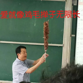 蒋晓龙曾经以“表情包”C位出道。在最出圈的那张表情包里,蒋晓龙在讲解无限长带电直导线的高斯面的建立时,一本正经地高举起鸡毛掸子当作导线,高深莫测的物理学一下子接地气又可爱起来。对于学生们制作的表情包,蒋晓龙自己用起来也很开心,“说明课堂让同学们印象深刻嘛。”“就地取材”是蒋晓龙课堂的一大特色,为了讲明白一个知识点,他在一节课里曾创下“摆弄门46次、丢粉笔段儿14次、压扁盒子7次、举起鸡毛掸子4次”的记录。
