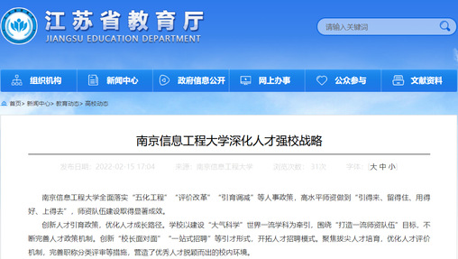 南京信息工程大学全面落实“五化工程”“评价改革”“引育调减”等人事政策,高水平师资做到“引得来、留得住、用得好、上得去”,师资队伍建设取得显著成效。