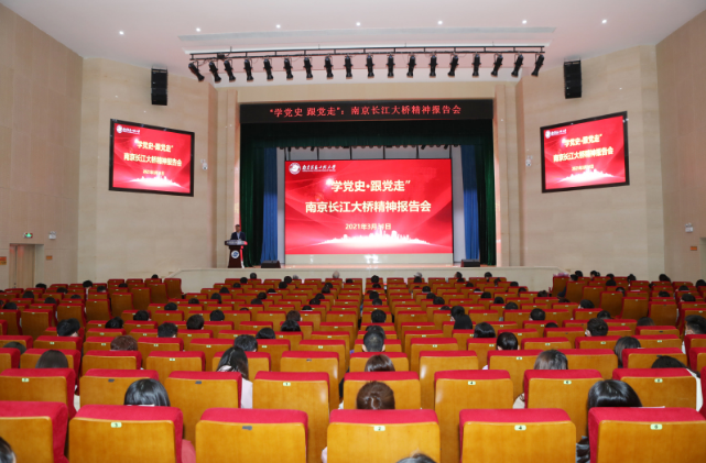 图为2021年3月31日,南京信息工程大学举行“‘学党史·跟党走’南京长江大桥精神报告会”(南京信息工程大学供图)