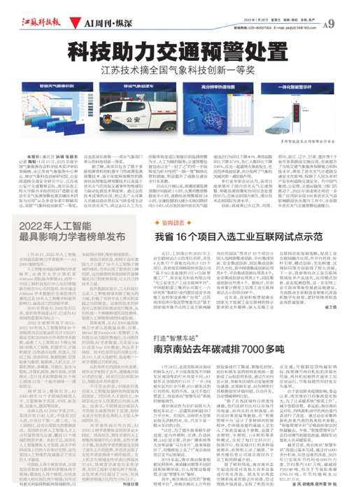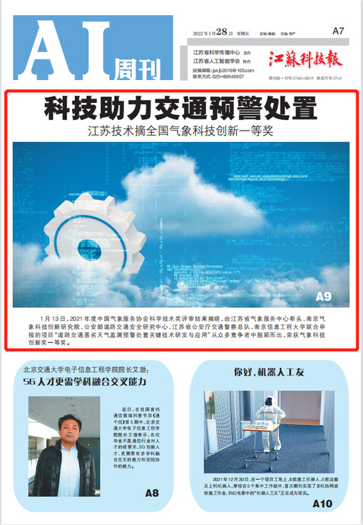 1月13日,2021年度中国气象服务协会科学技术奖评审结果揭晓,由江苏省气象服务中心牵头、南京气象科技创新研究院、公安部道路交通安全研究中心、江苏省公安厅交通警察总队、南京信息工程大学联合申报的项目“道路交通恶劣天气监测预警处置关键技术研发与应用”从众多竞争者中脱颖而出,荣获“气象科技创新奖”一等奖,这也是该年度唯一一项由气象部门牵头的科技创新一等奖。