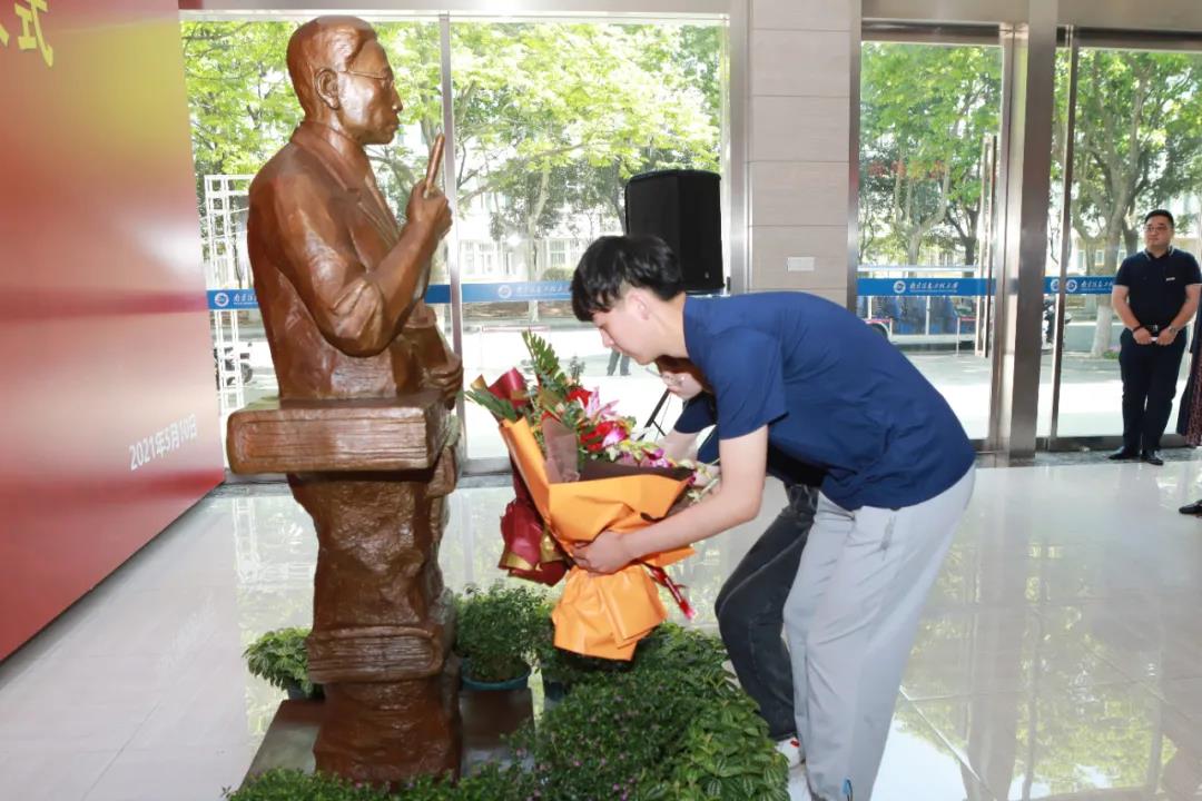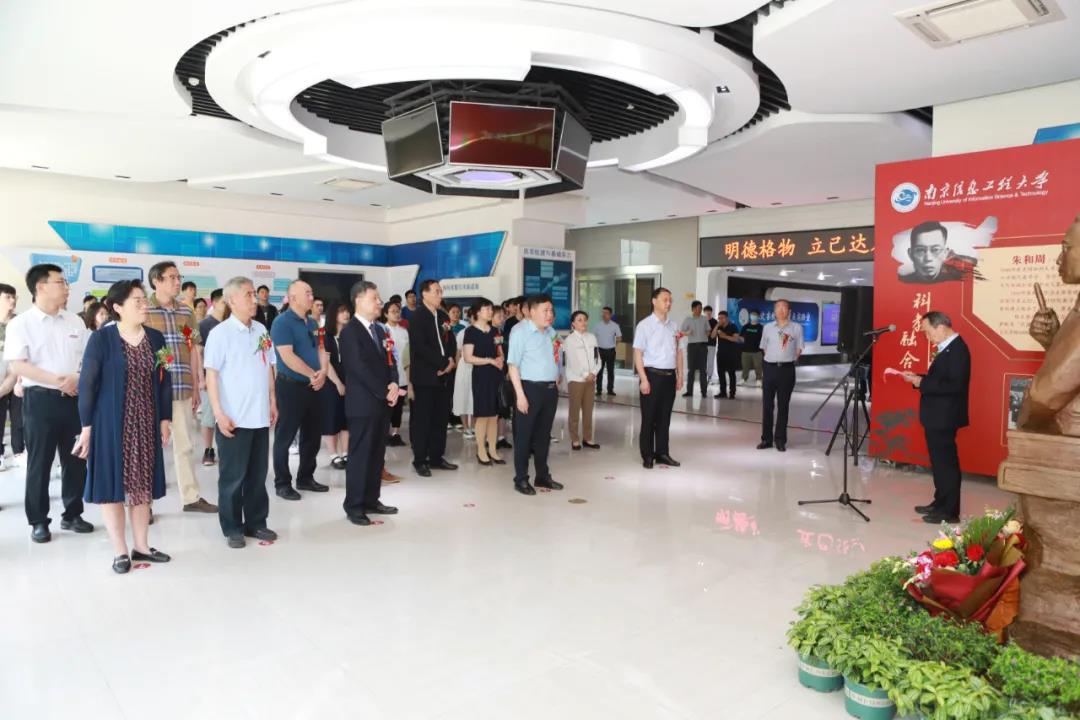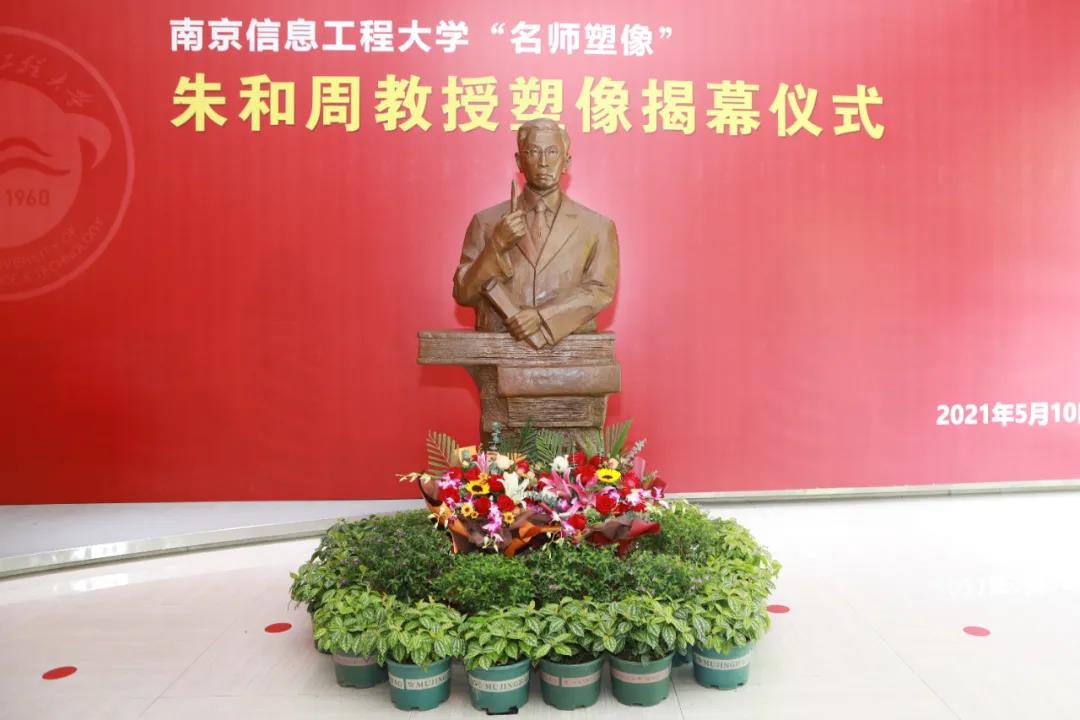 5月10日,著名气象学家、南京信息工程大学气象系首任系主任朱和周教授雕像在学校揭幕。朱和周先生雕像由青铜铸造,高约2米,重约1吨。雕像选取朱和周课堂授课瞬间形象为主要构图,雕像中他左手握书,右手持笔,半身立于叠放书本之上。寓意朱和周谆谆教导、和蔼可亲以及为祖国气象人才培养事业鞠躬尽瘁的教师形象。该塑像是学校打造“校园名师塑像工程”的重要一笔,是信大精神积淀传承的文化符号,是汇聚信大精神的强大“磁场”。