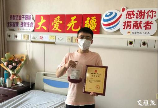 “就和献血感觉差不多的,能救人一命一切都值得。”8月3日上午,在东南大学附属中大医院的病房里,鲜红的血液缓缓流进血细胞分离机,经过约4个小时的采集,南京信息工程大学应用技术学院2018级自动化专业金安志同学顺利完成了造血干细胞的捐献。