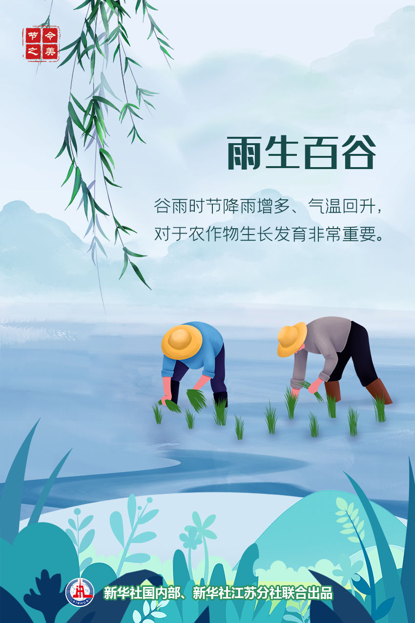 “谷雨”这一节气名称源自古人“雨生百谷”之说,这反映出节气的农业气候意义。江苏省农业科学院粮食作物研究所研究员姚金保介绍,降雨增多、气温回升,对于农作物生长发育非常重要,“谷雨有雨,缸中有米”“谷雨前后一场雨,胜似秀才中了举”等一系列农谚,都说明雨水滋润对作物生长的重要性。